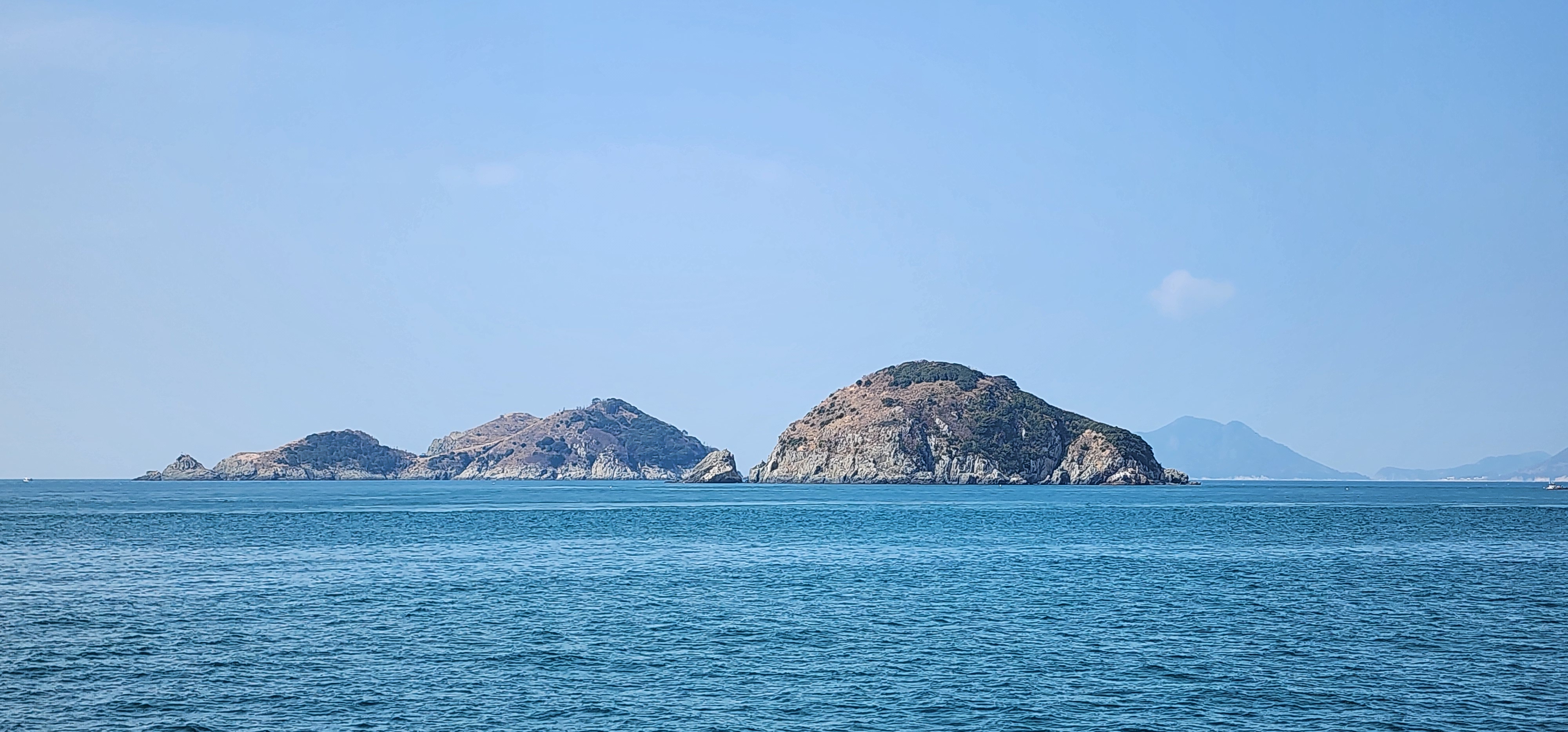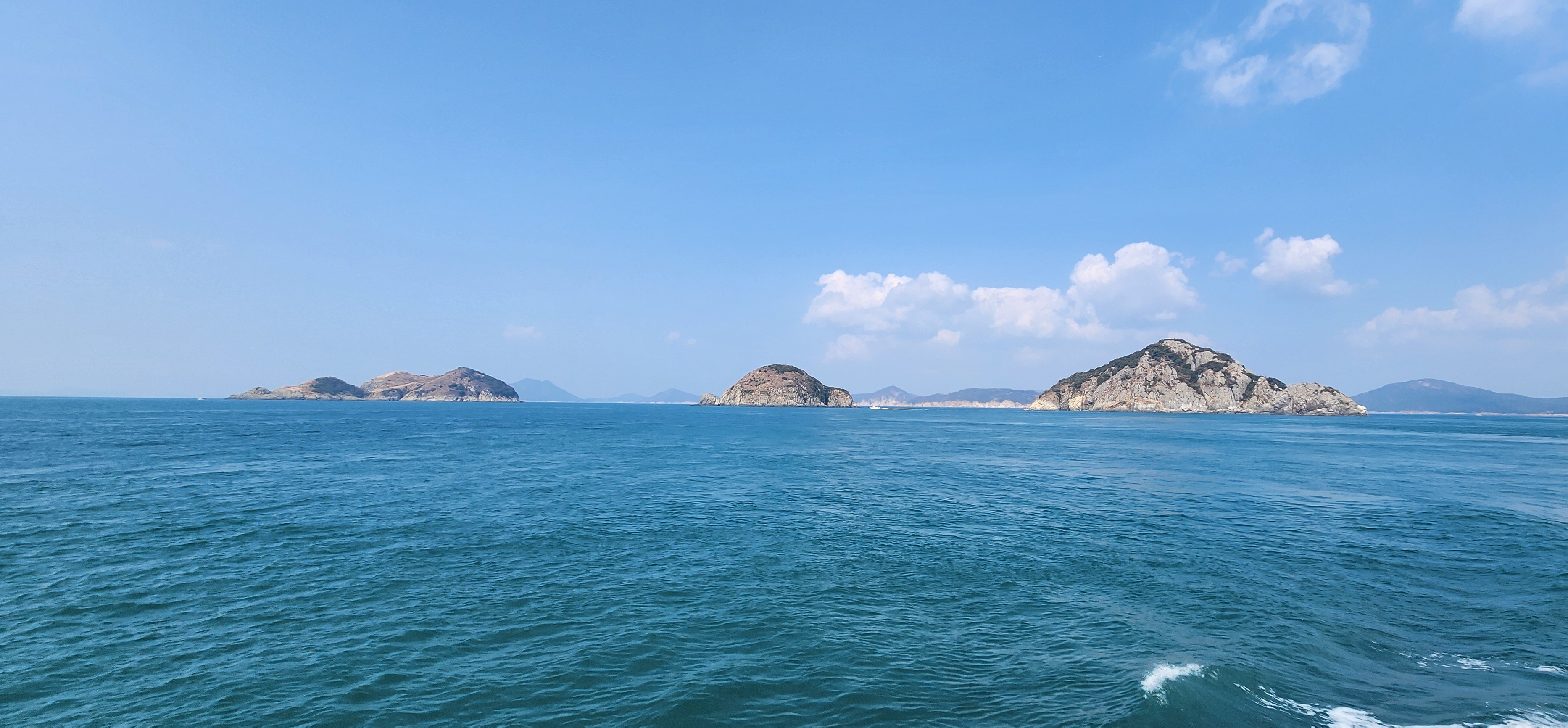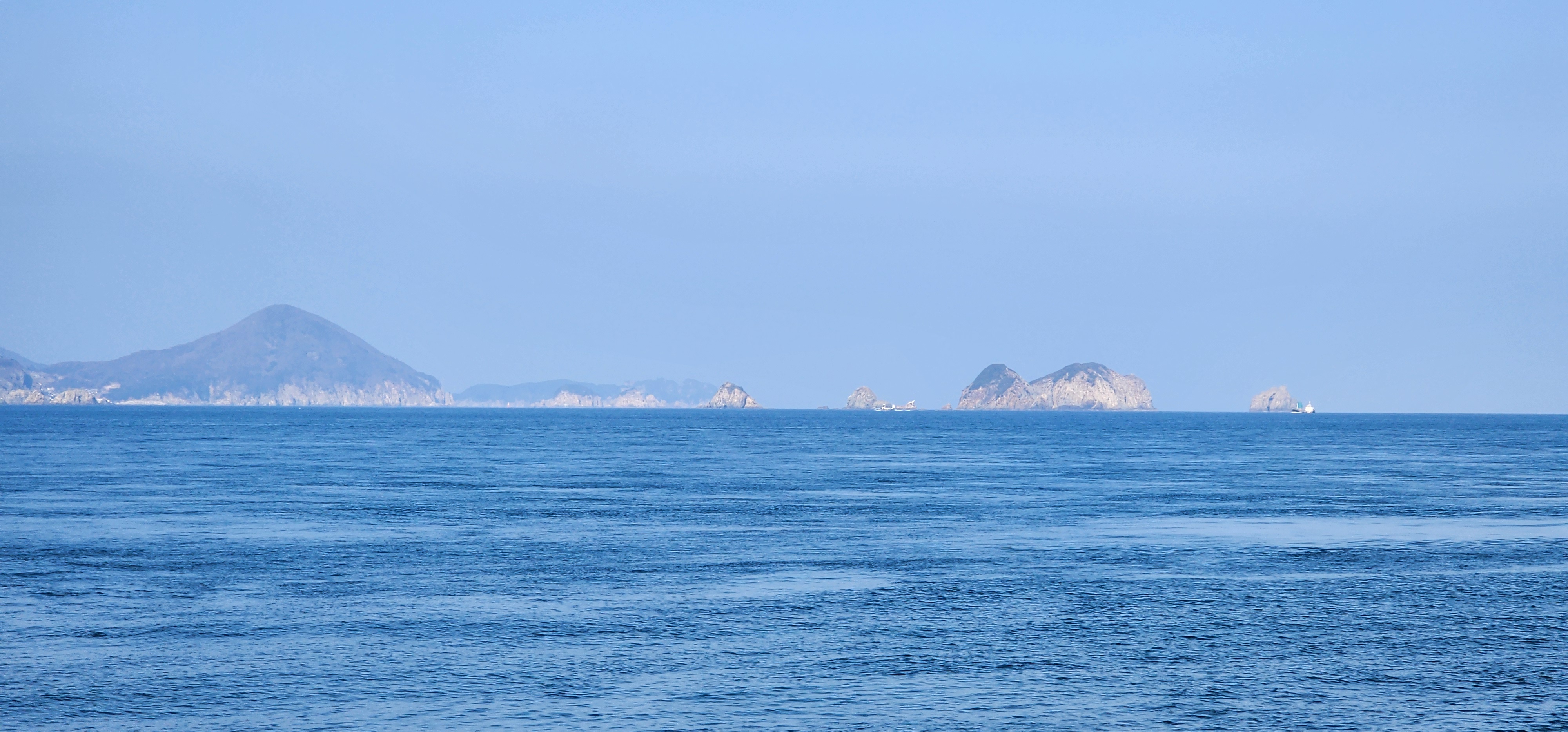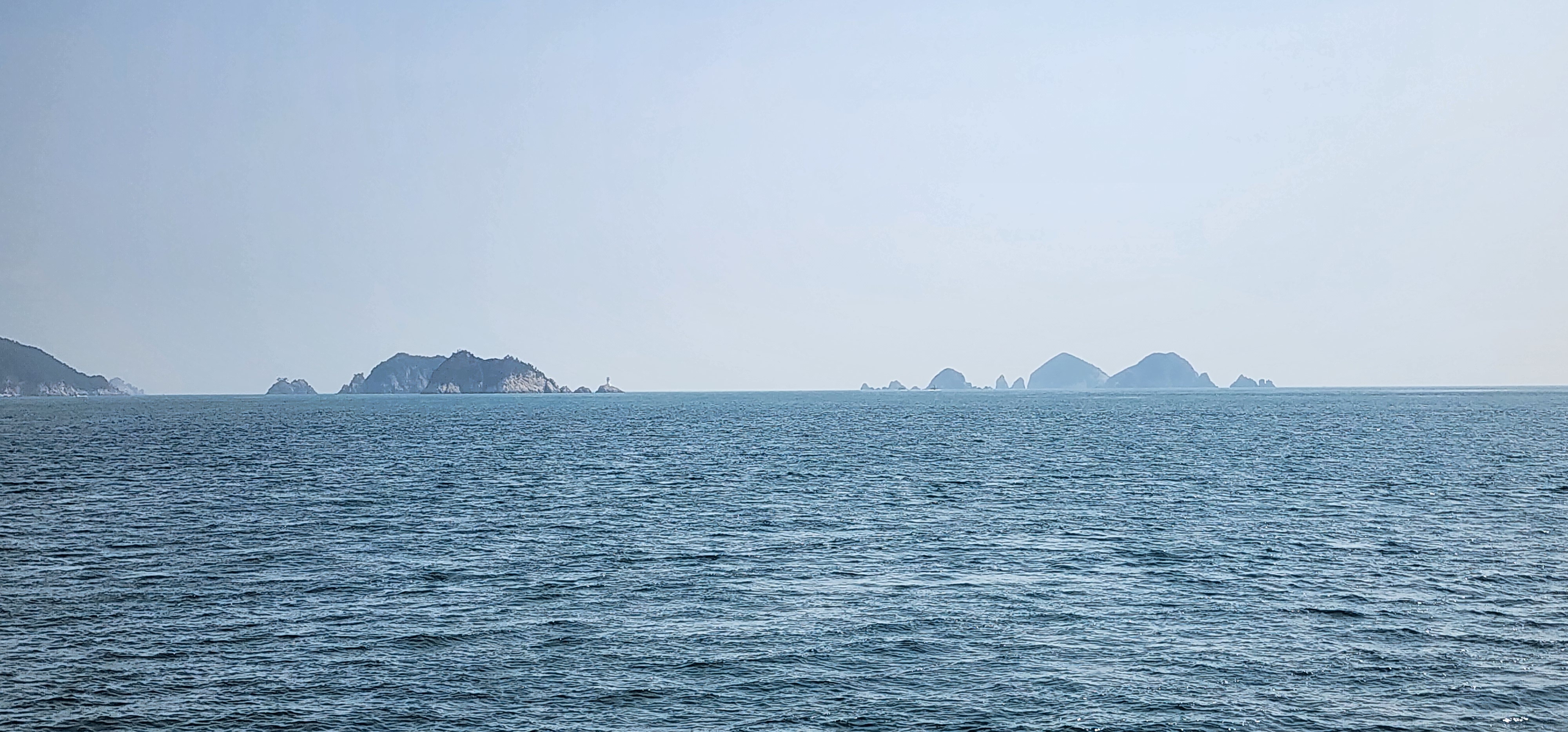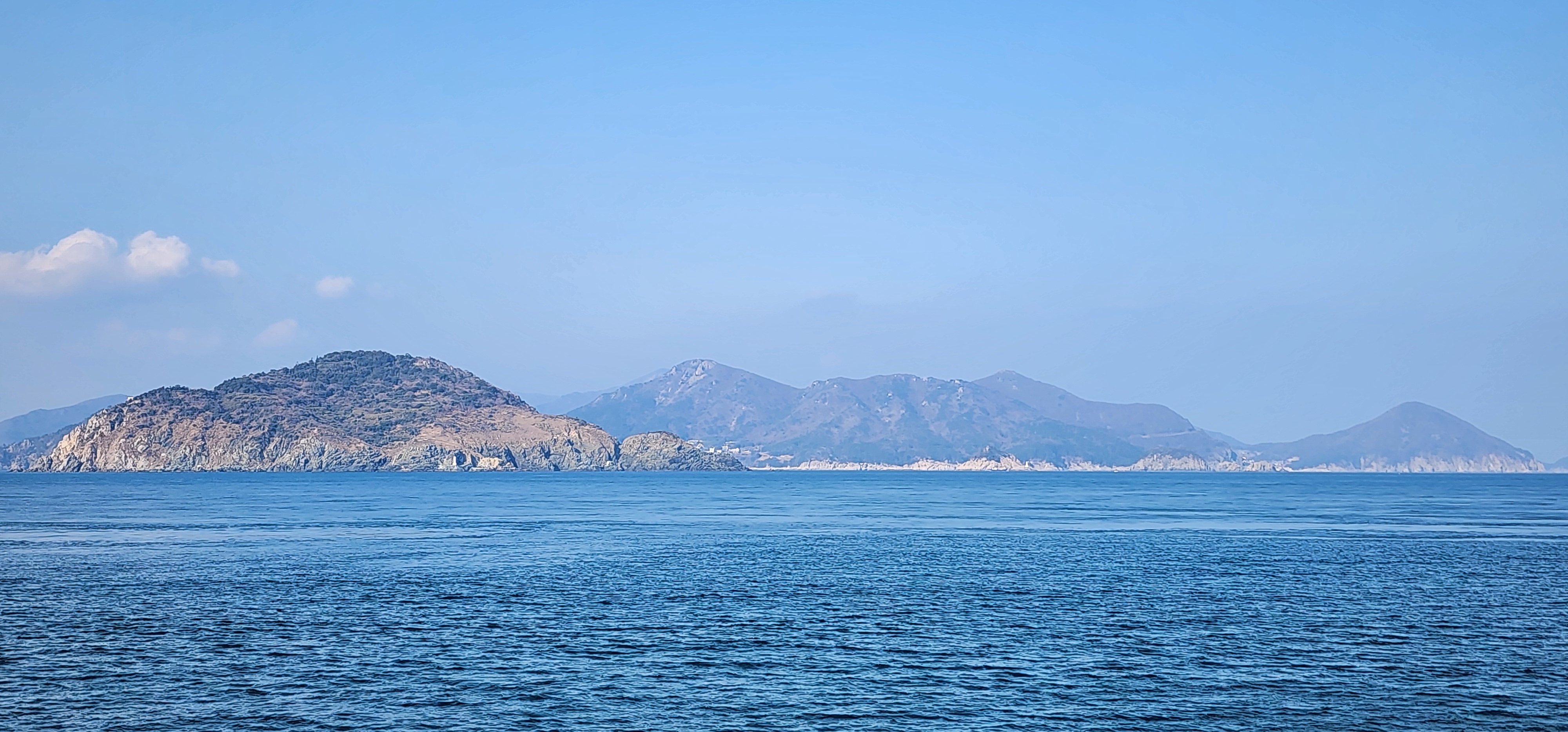 멀어져가는 가왕도 뒤로 어유도, 매물도, 소매물도