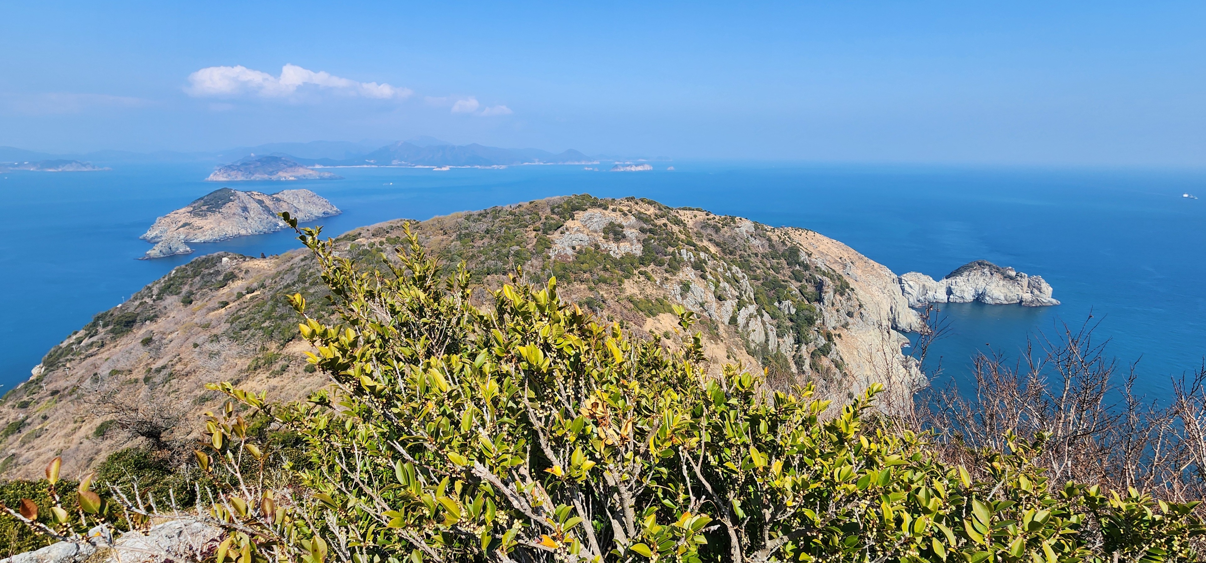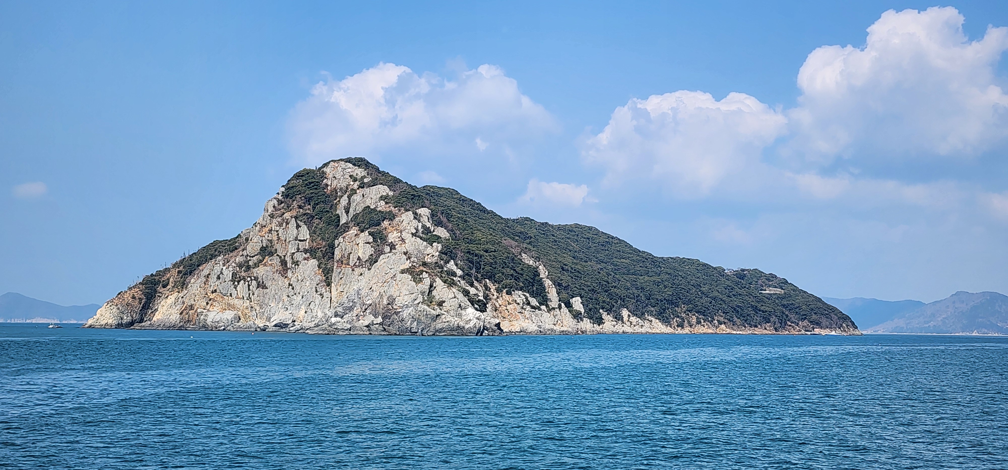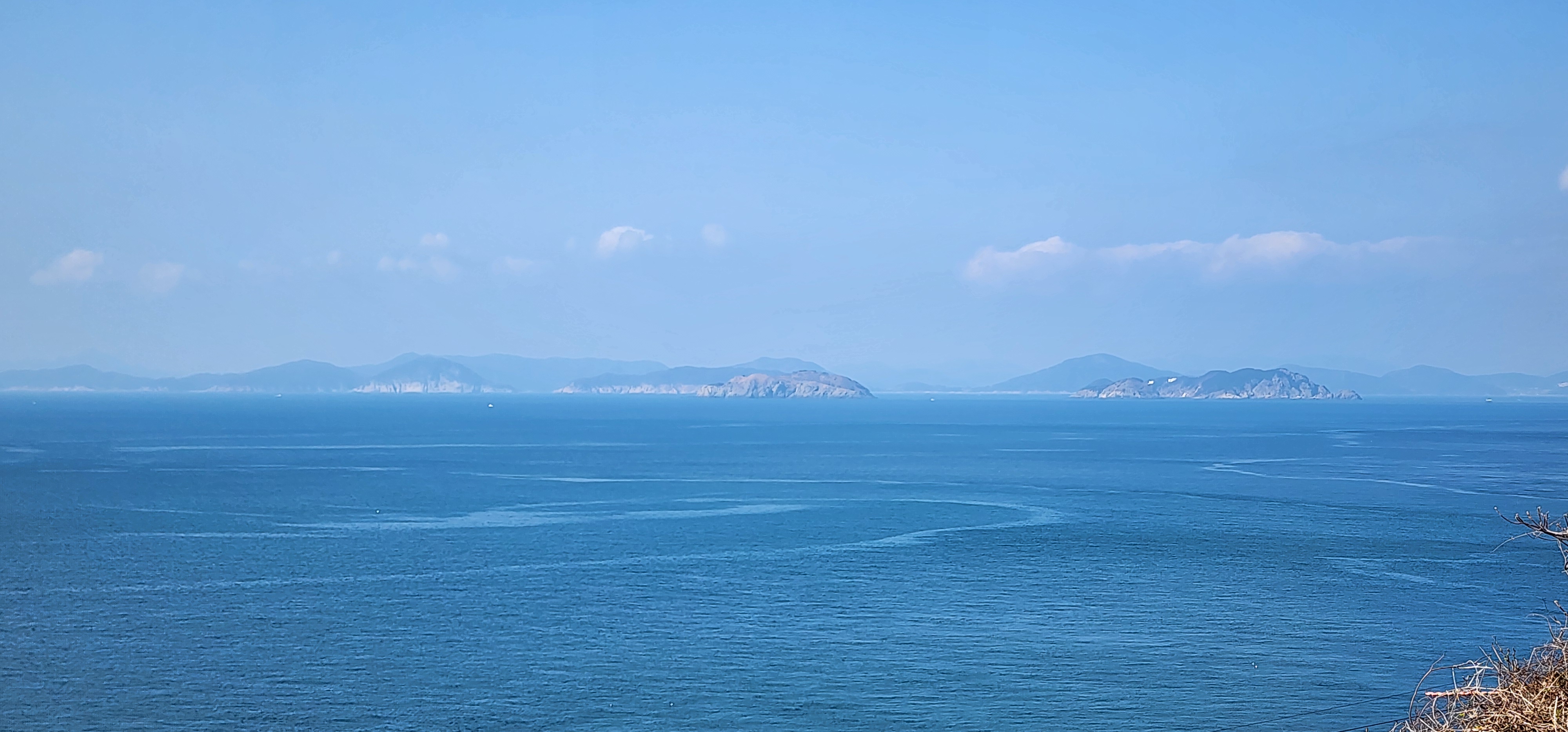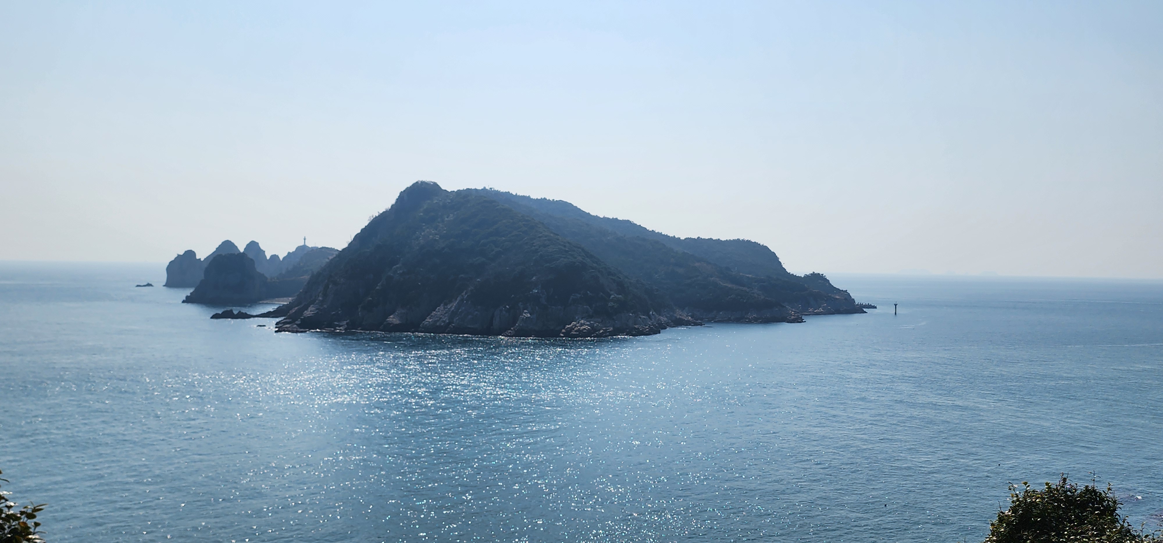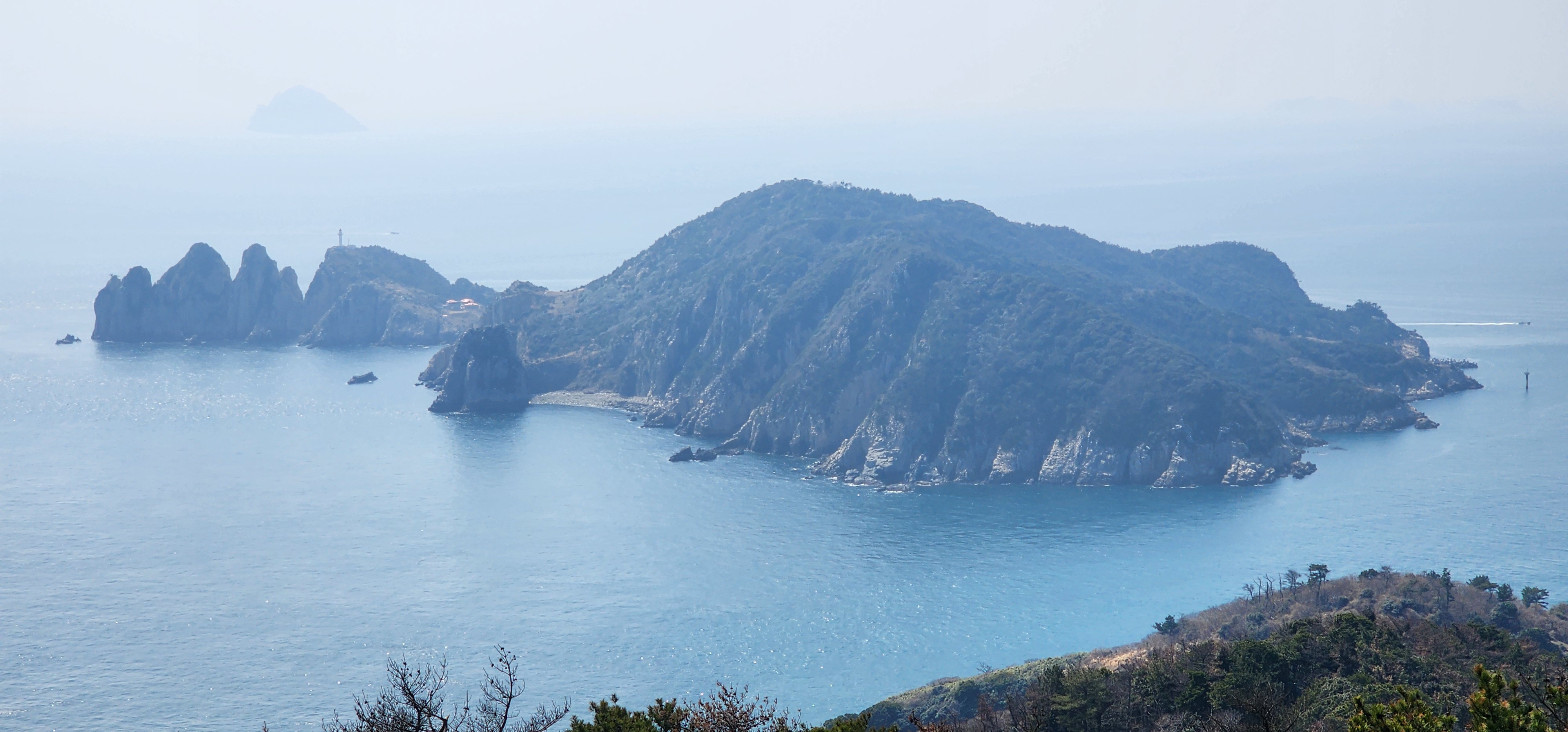 소지도를 당기니 그 뒤로는 욕지도가 보이고, 옆으로는 연화도가 흐릿하다.