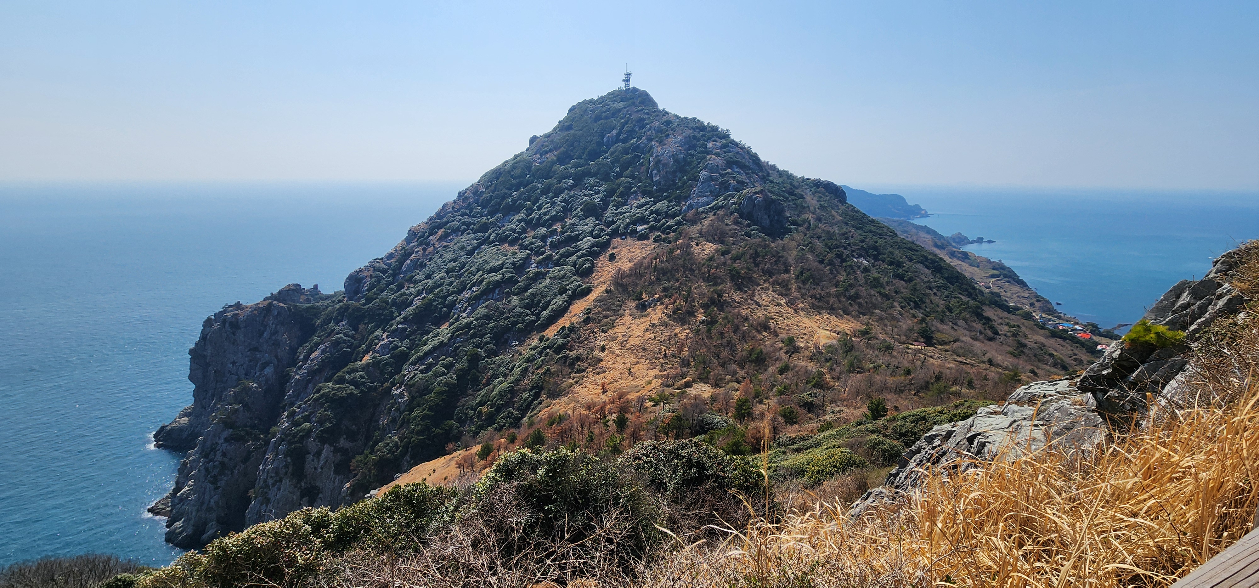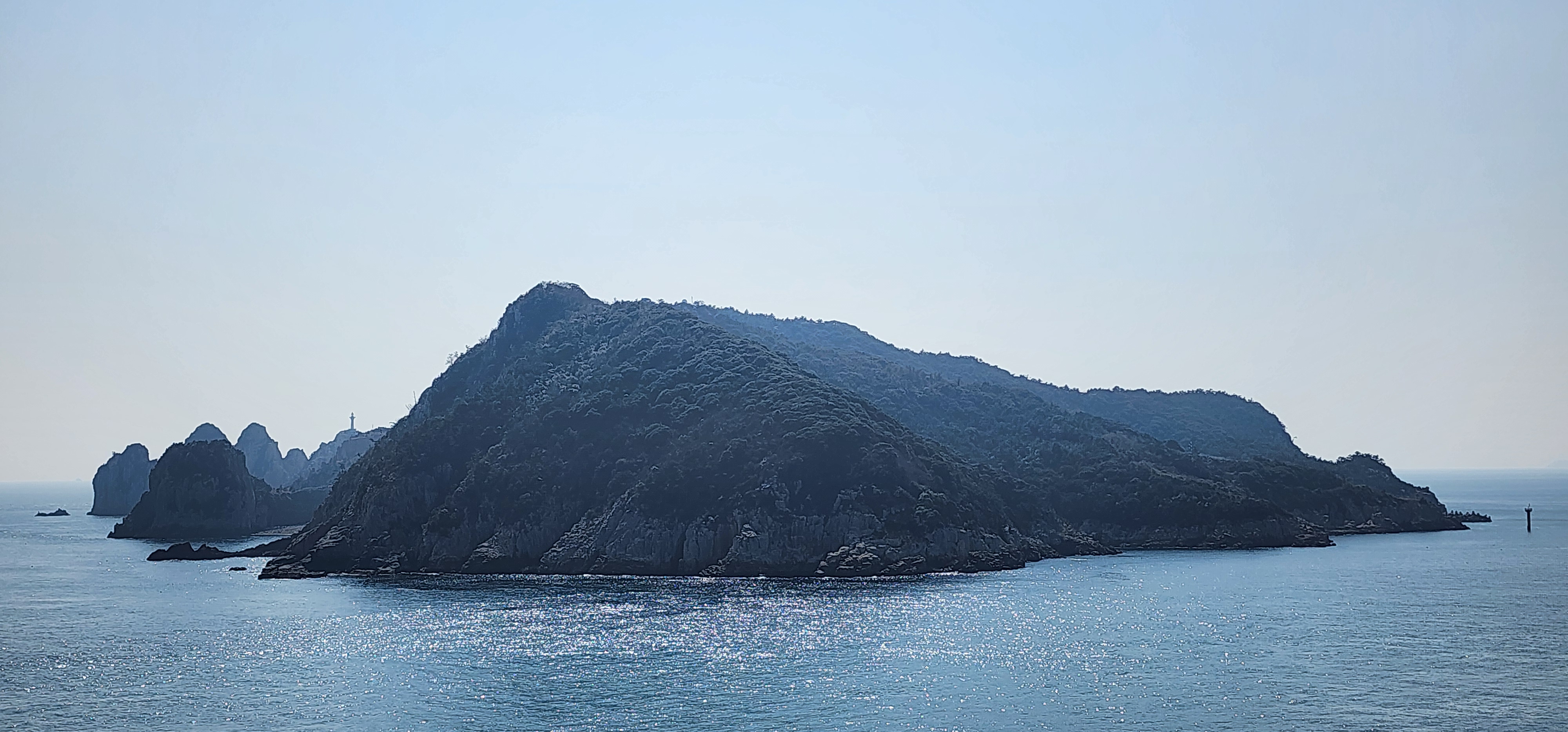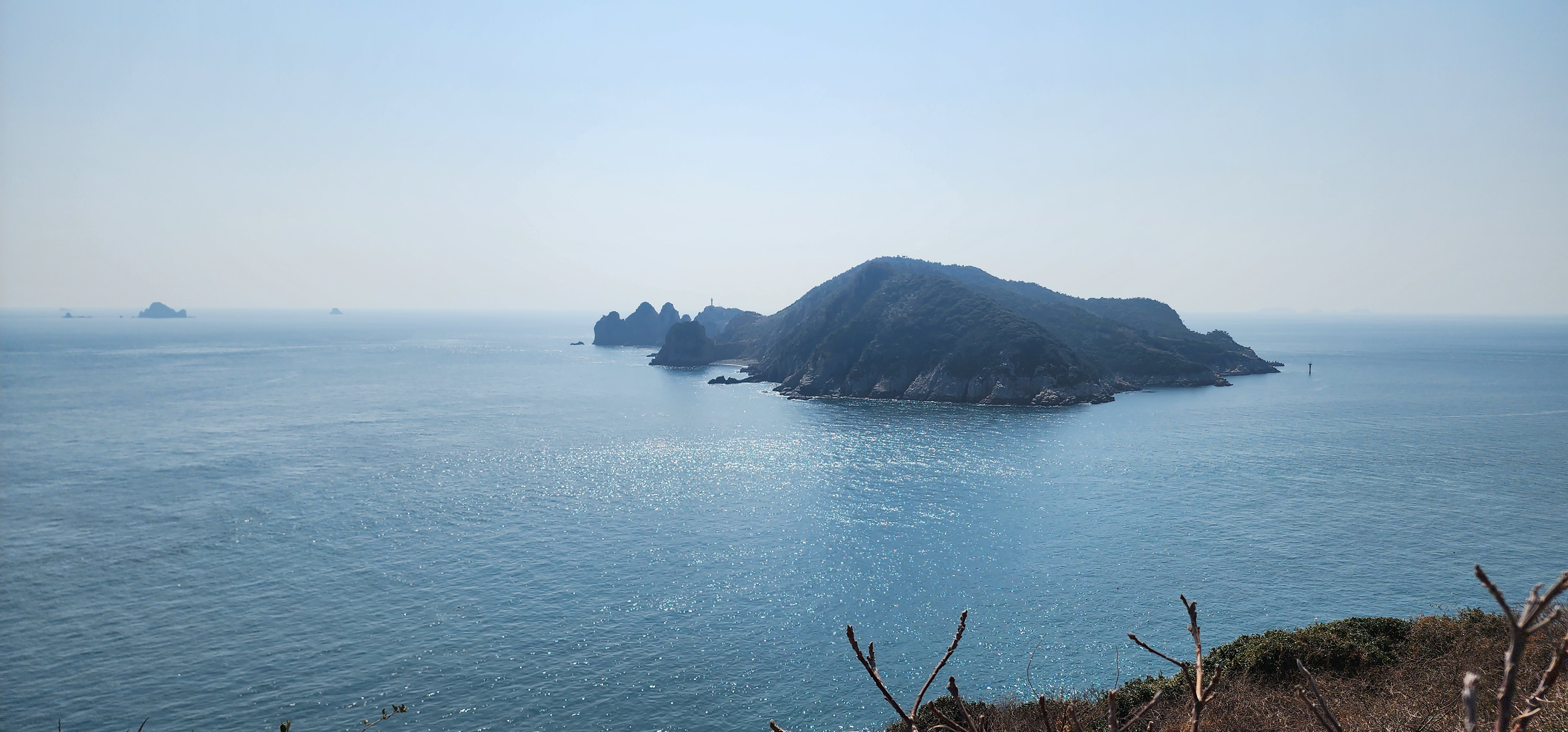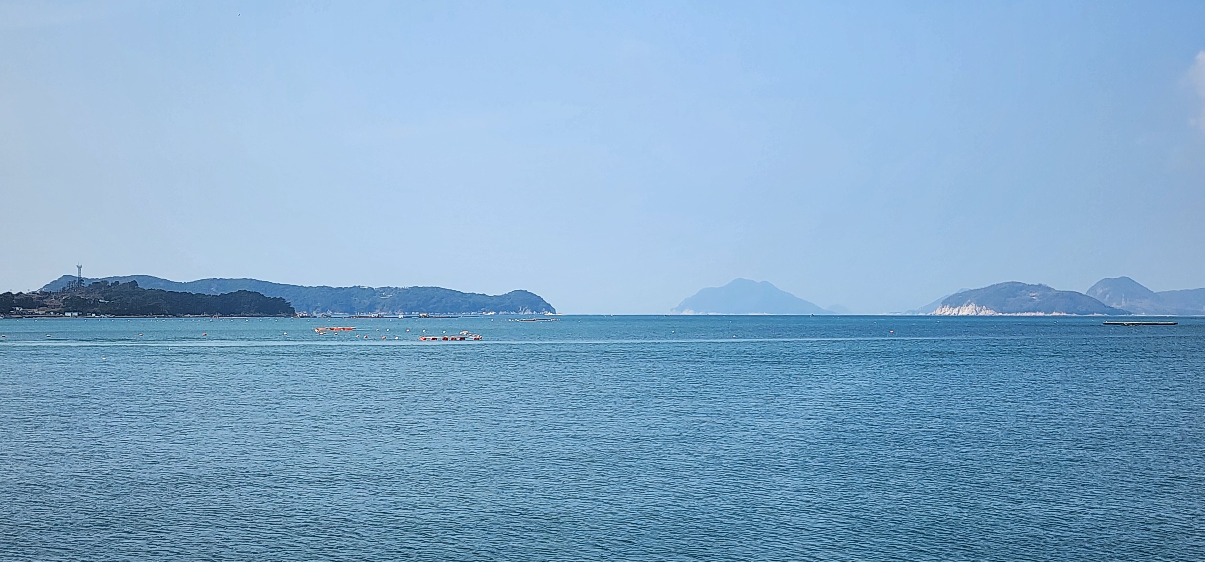 소지도를 당기니 그 뒤로는 욕지도가 보이고, 옆으로는 연화도가 흐릿하다.