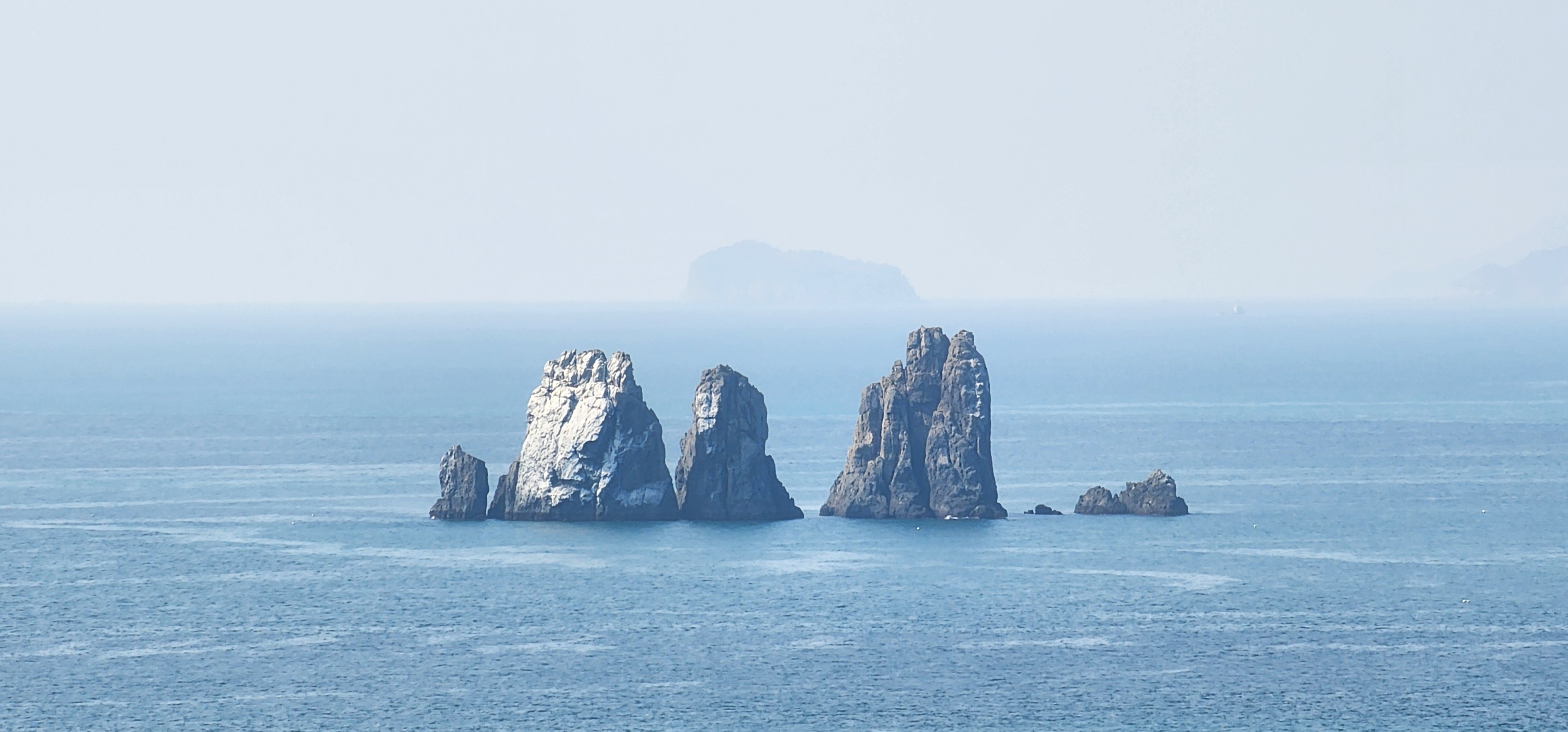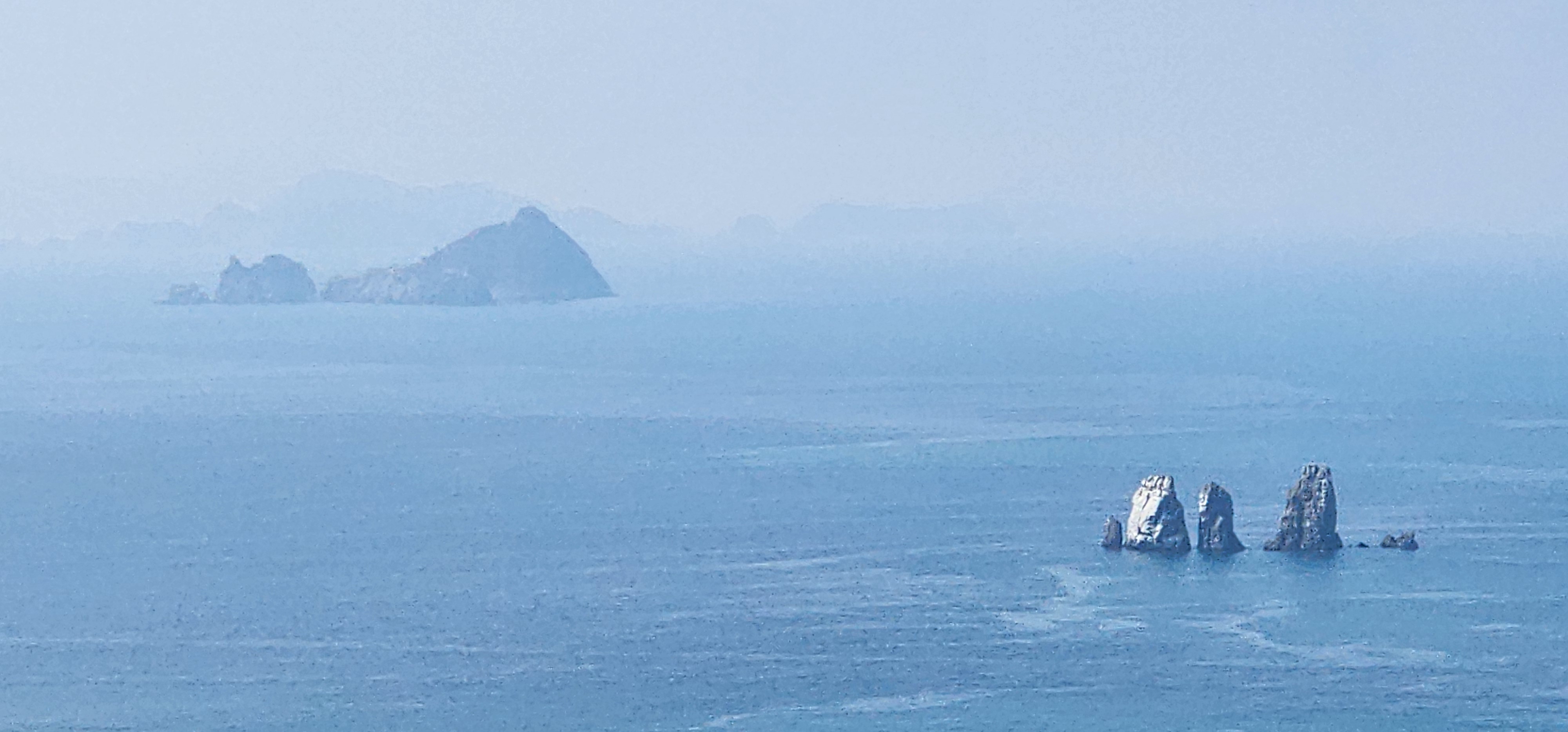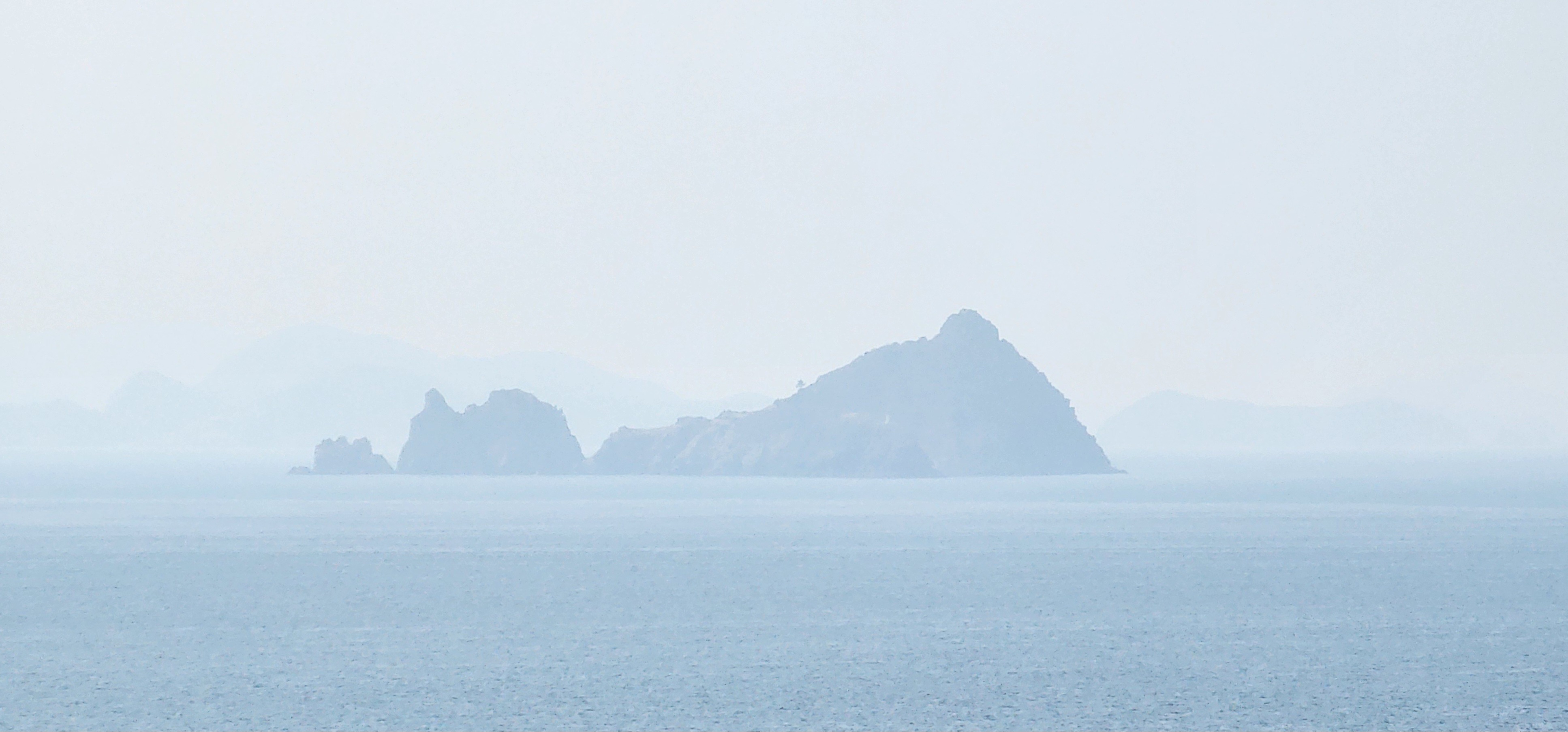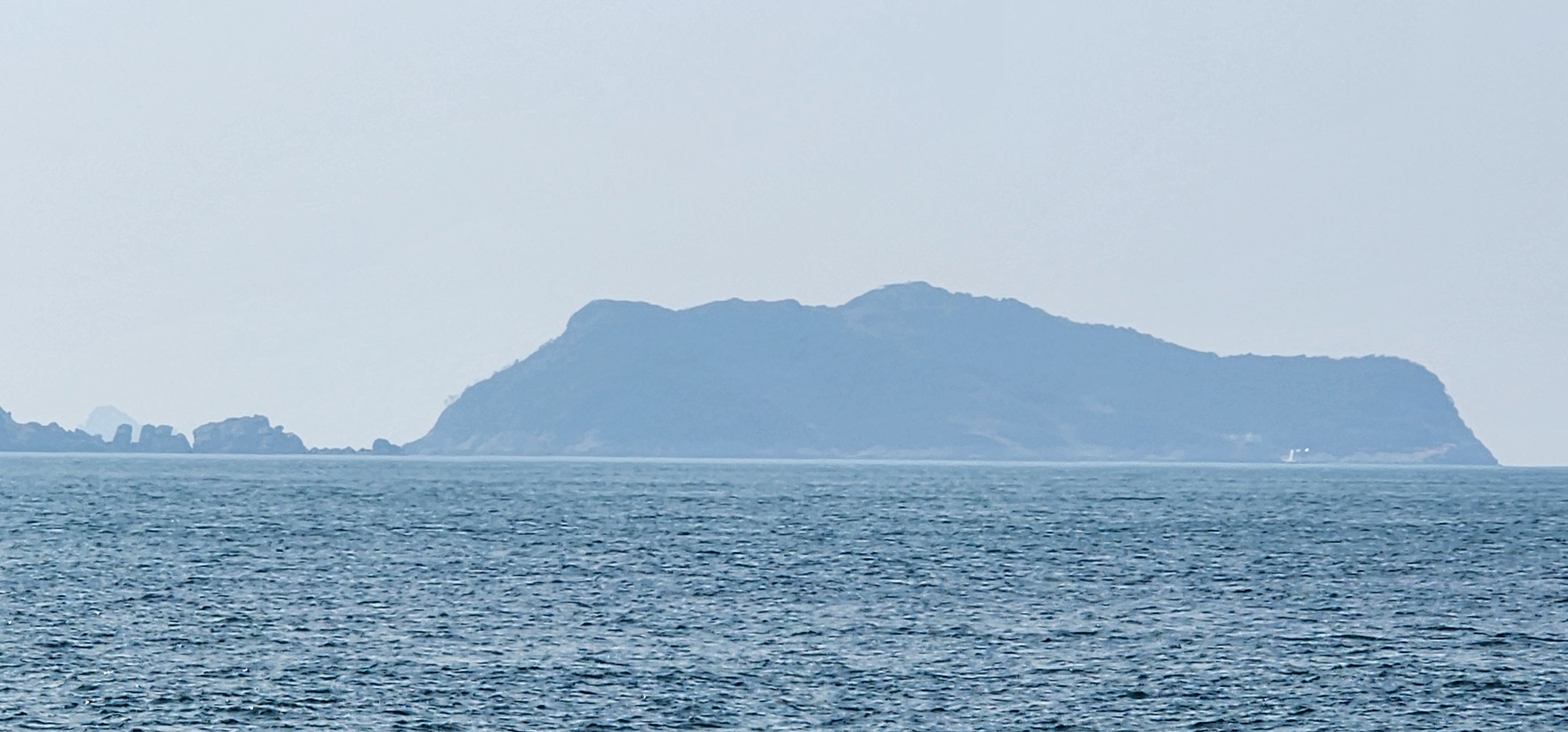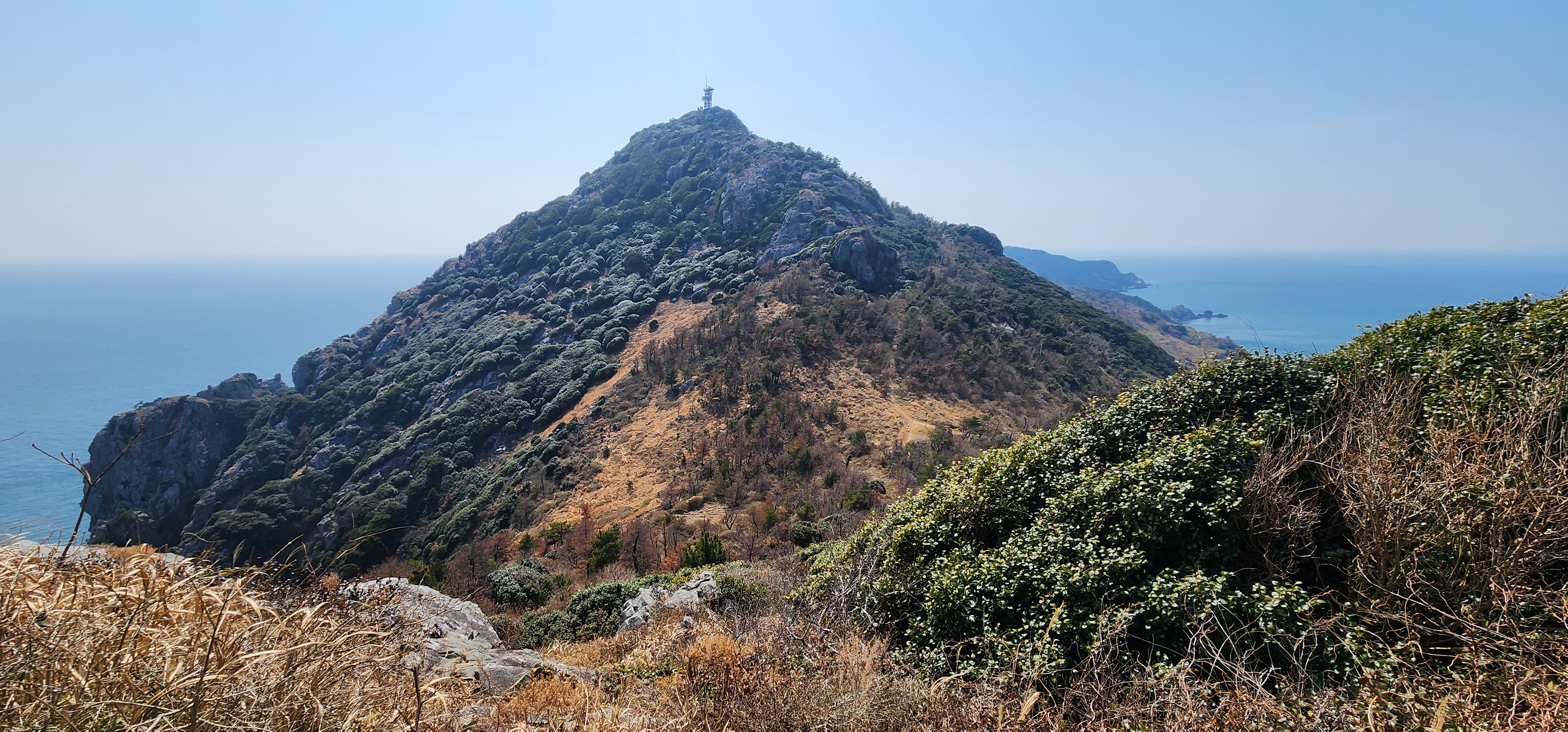 소지도를 당기니 그 뒤로는 욕지도가 보이고, 옆으로는 연화도가 흐릿하다.