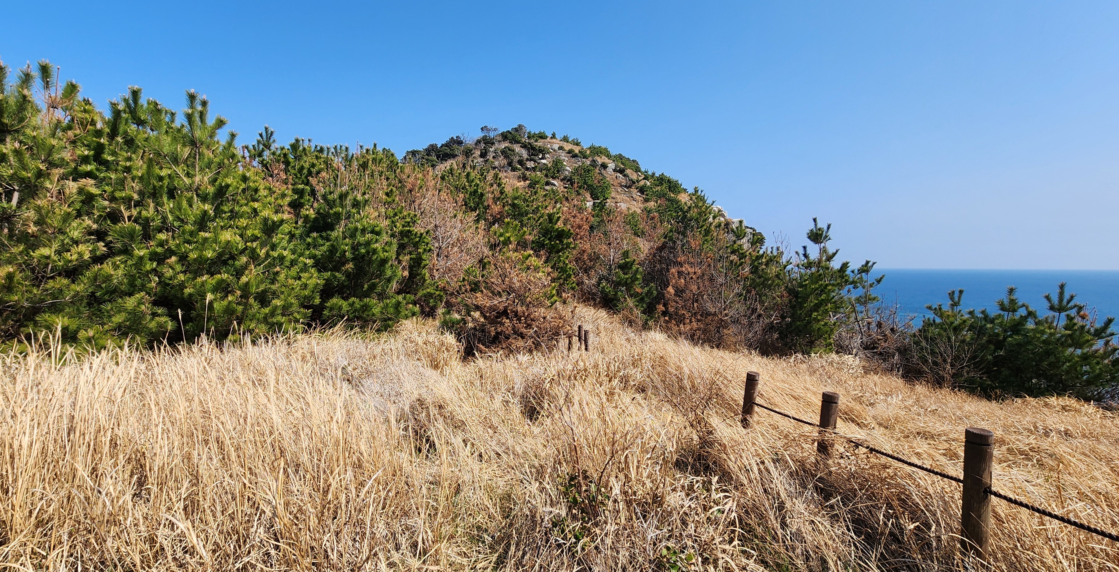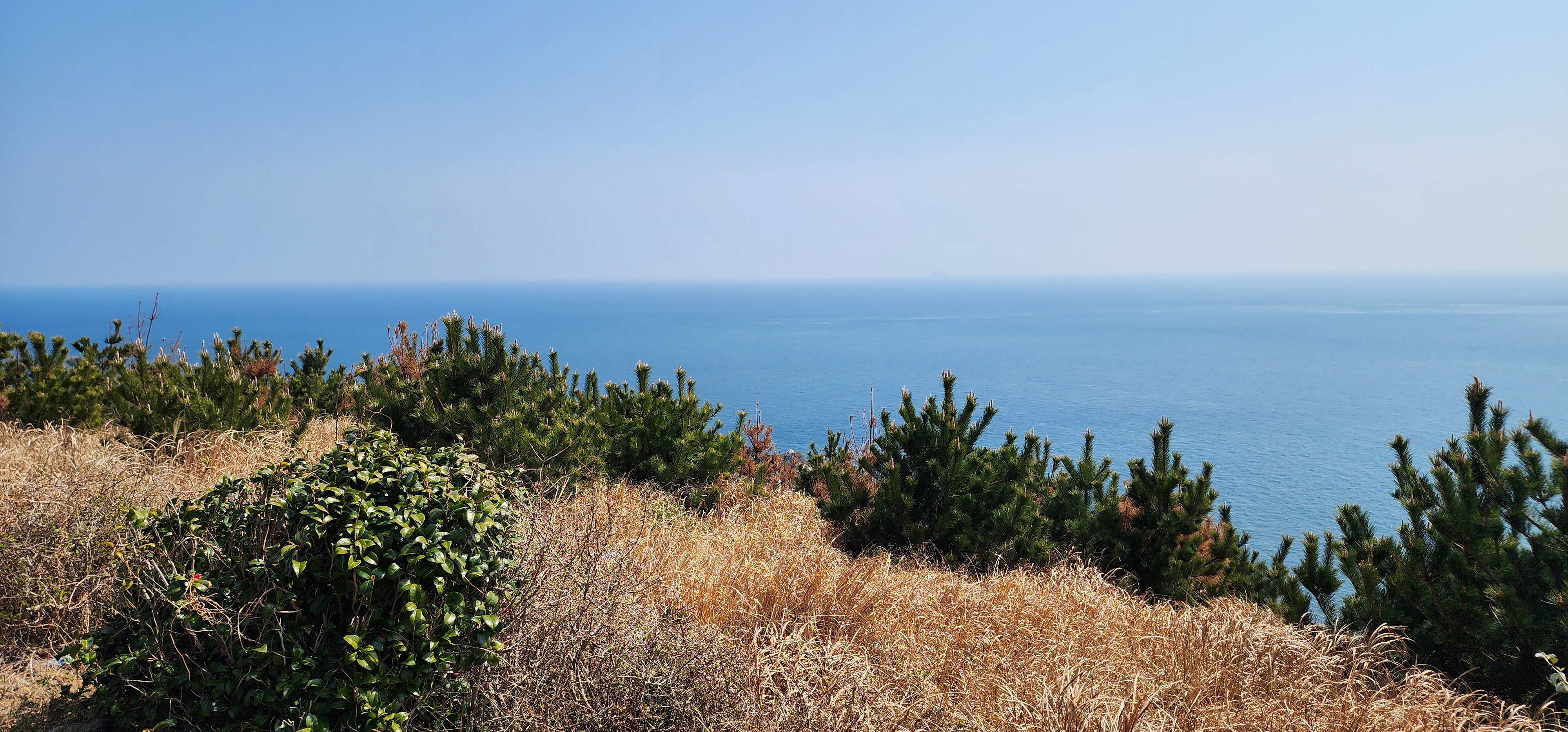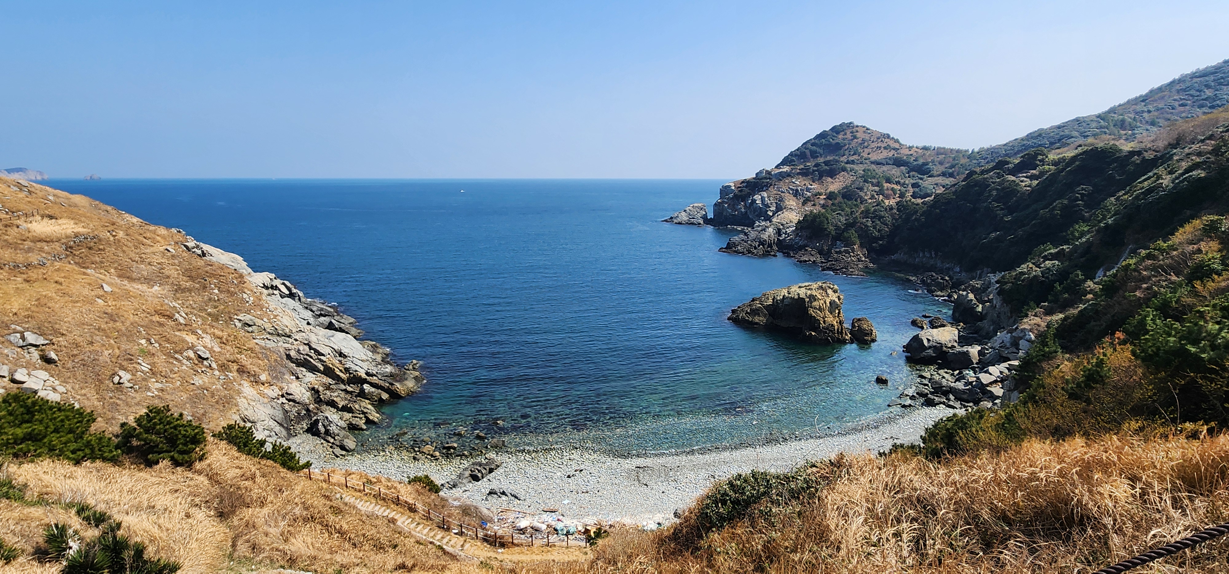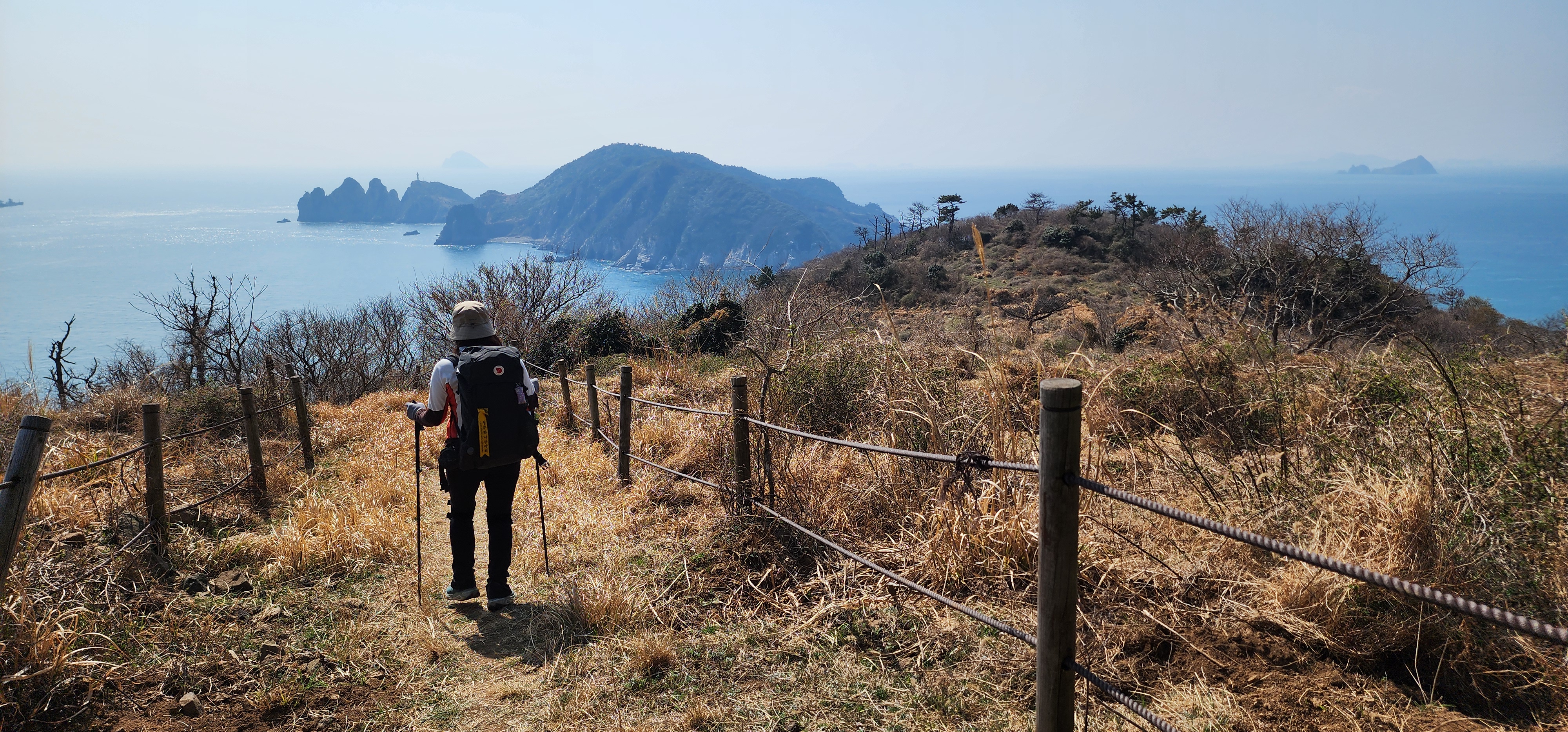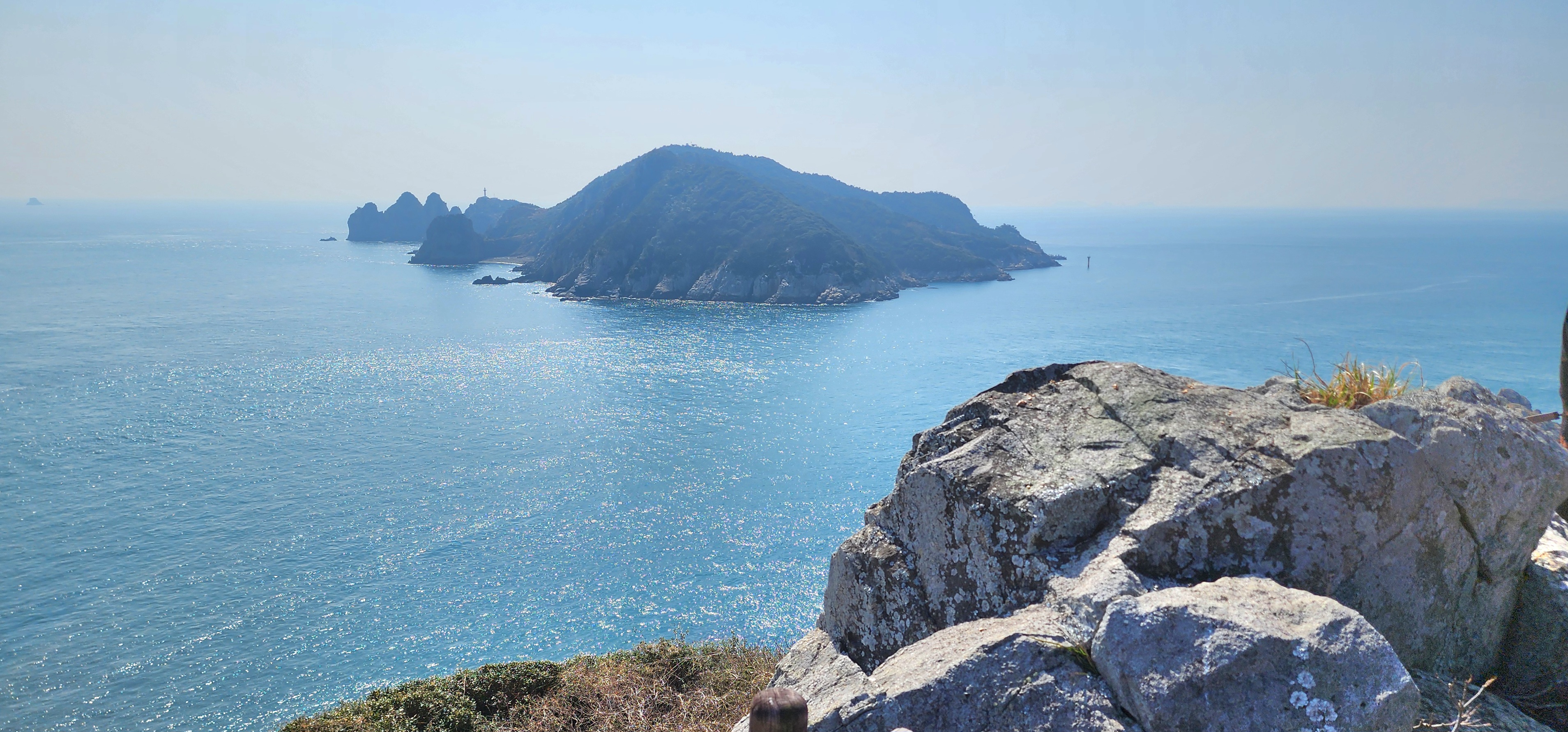 홍도 전망대에 도착하여, 이곳은 일출과 일몰을 한곳에서 볼 수 있는 장소로 날씨가 좋으면 대마도도 보인다고 하는데, 오늘은 해무로 오리무중이다.