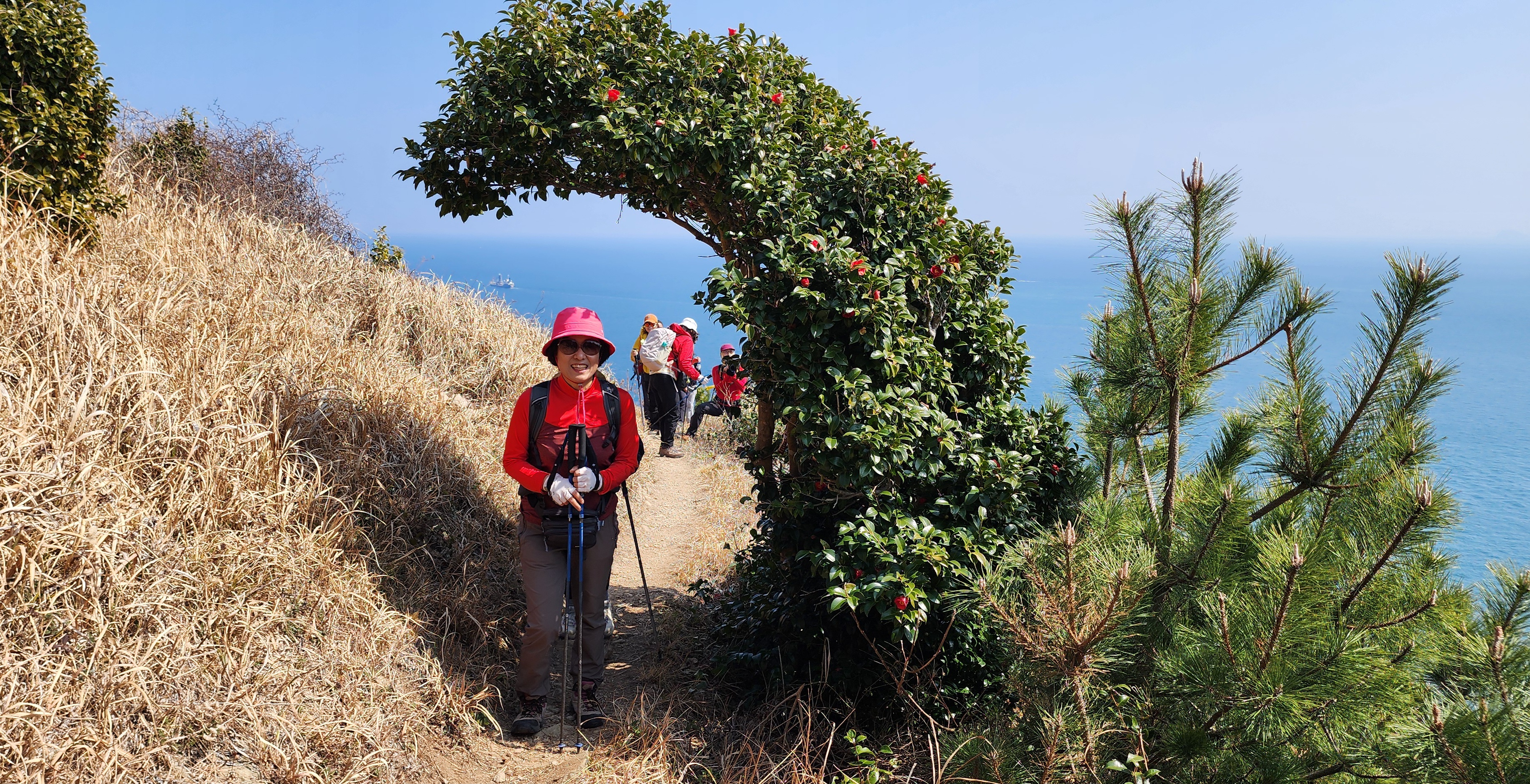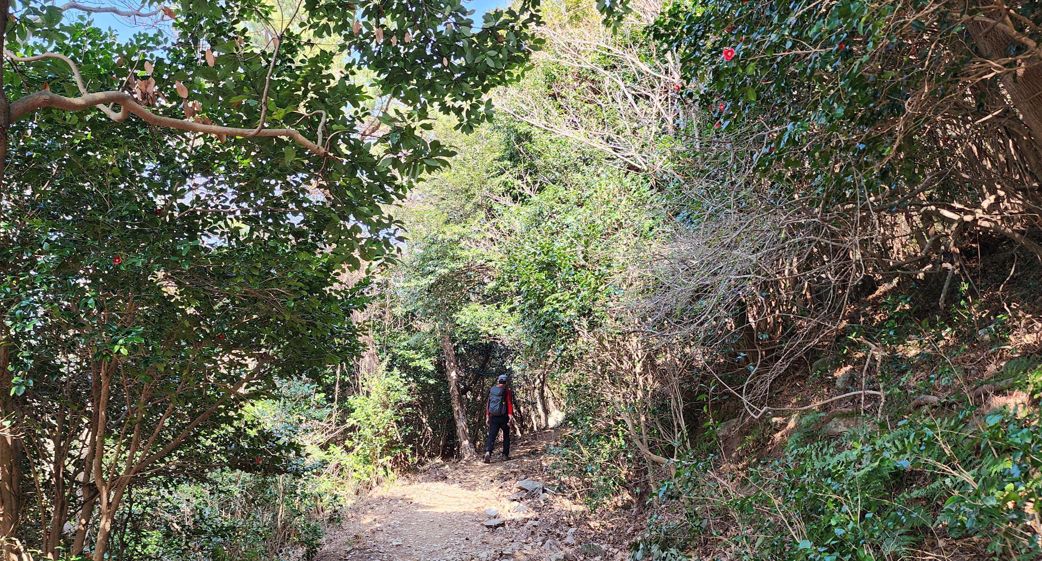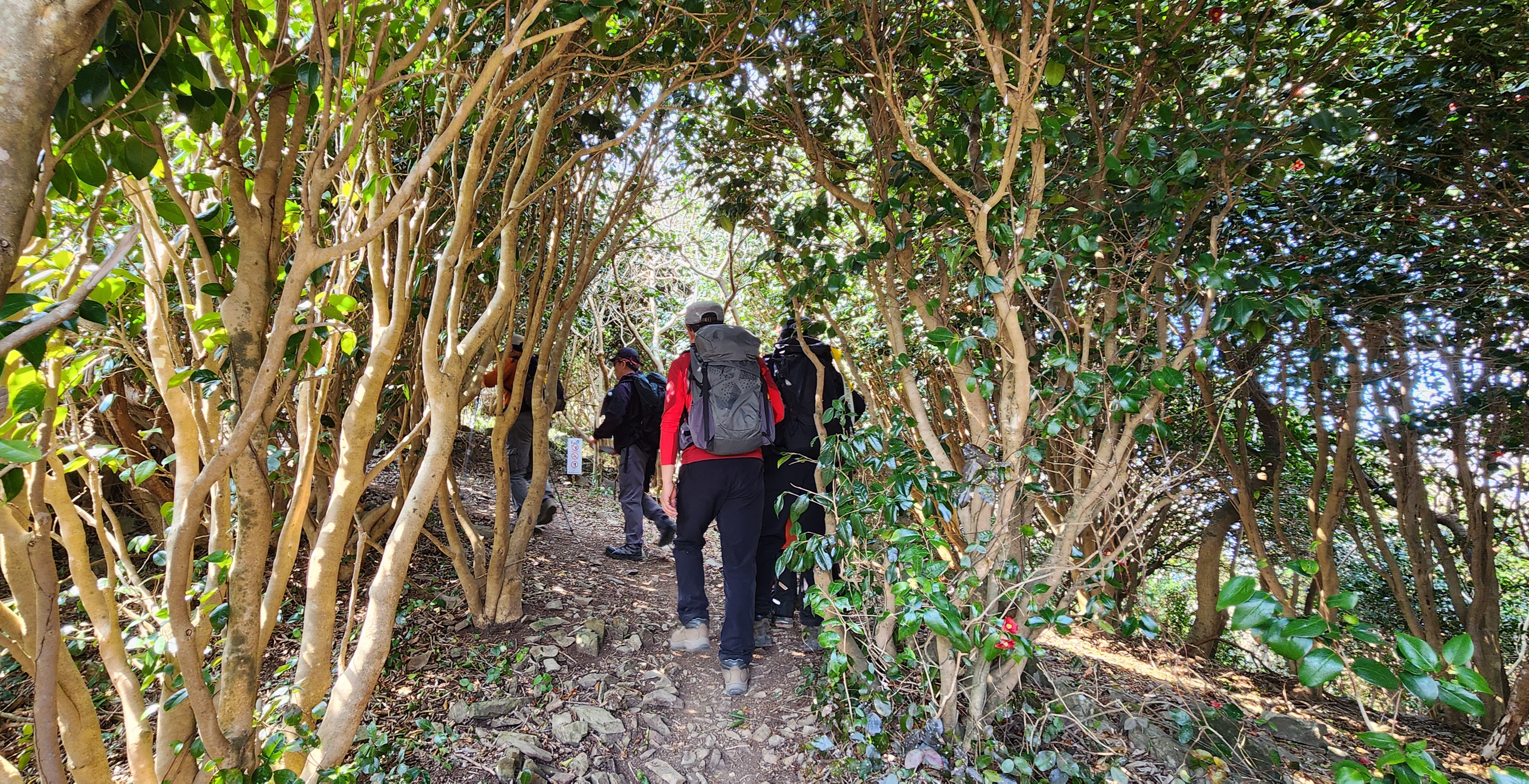 동백나무 사열을 받으며 장군봉으로 간다.