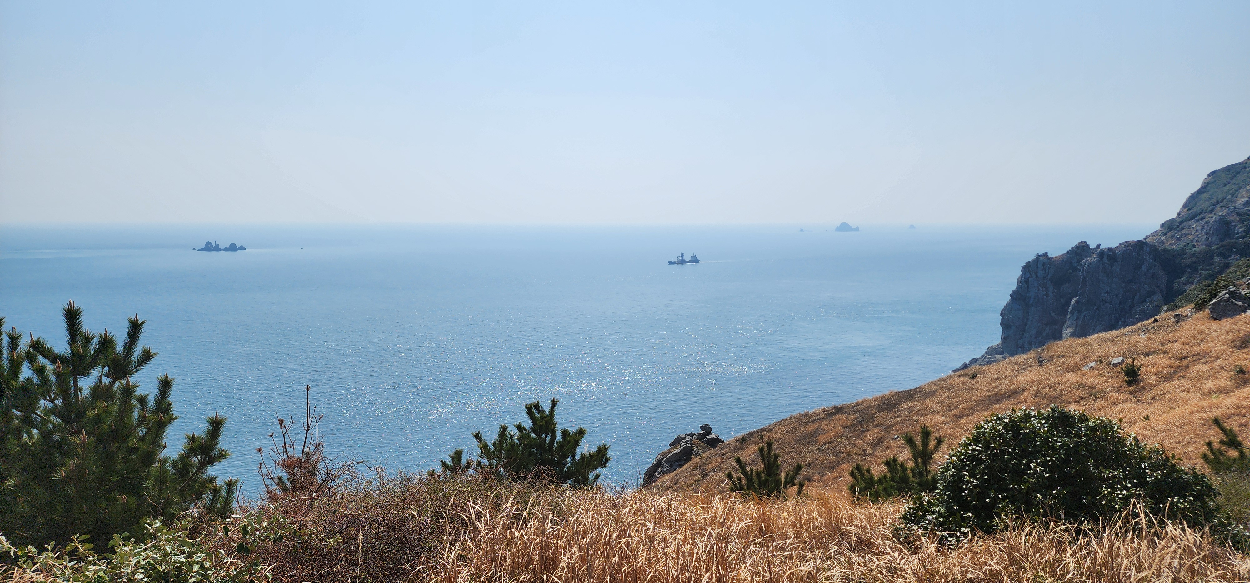 멀리 소지도 뒤로 보이는 욕지도