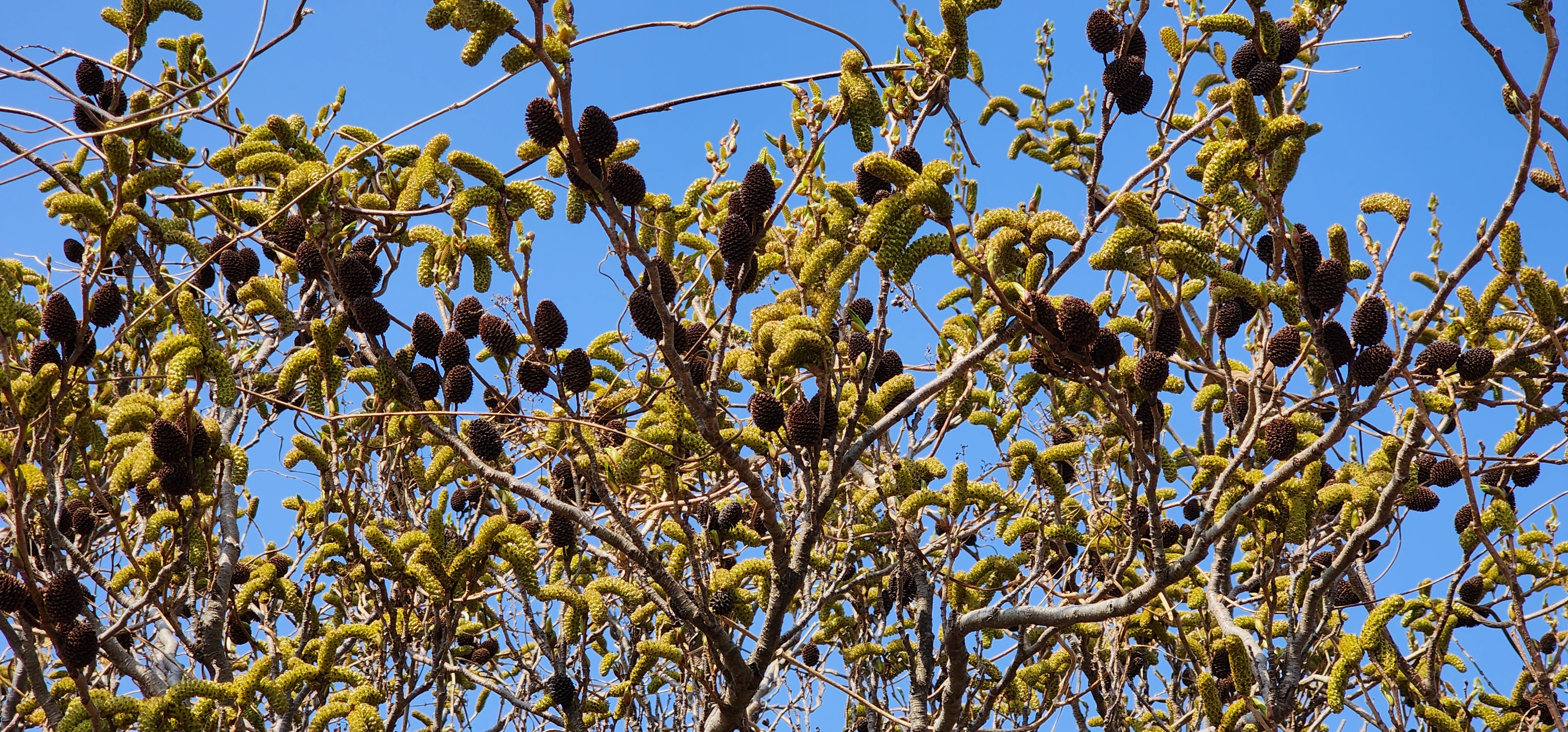 사방오리나무 수꽃이 풍성하다.