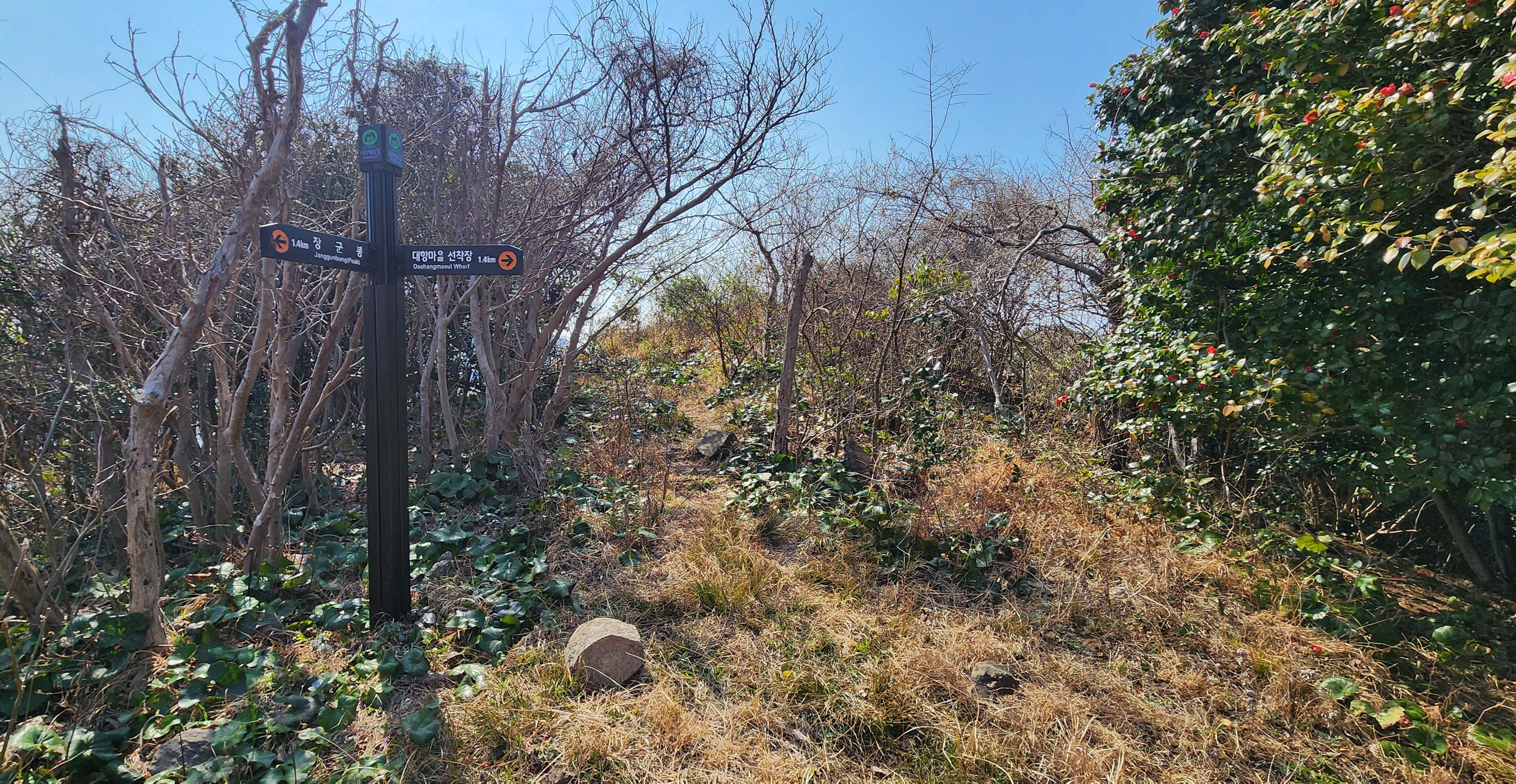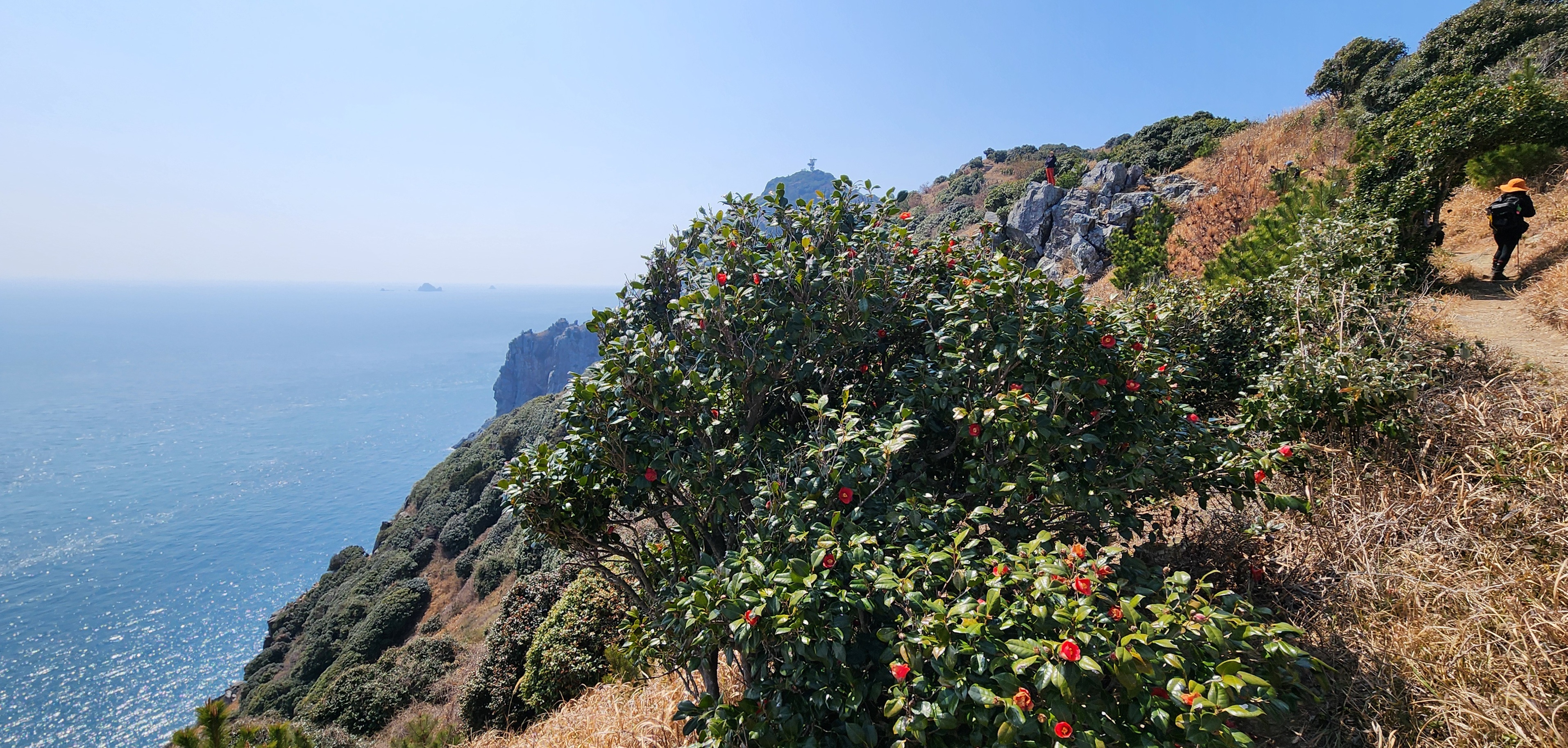 가야 할 장군봉 사면에는 동백군락이 엄청나다.